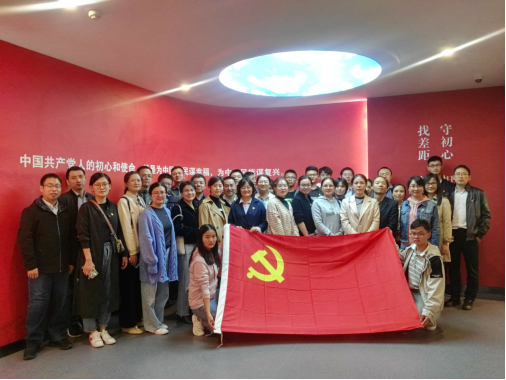 参观尾声,全体党员在“中国共产党人的初心和使命,就是为中国人民谋幸福,为中华民族谋复兴”展板前合影留念。