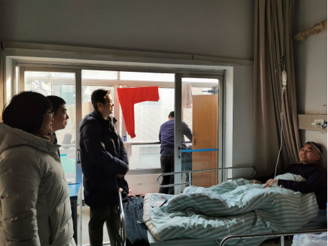 首先,班子一行驱车来到省立医院,看望了王存勇老师,在慰问交谈中,询问了王老师的病因和相关治疗情况,并安慰他安心养病、静心调养,并祝愿王老师尽快康复。