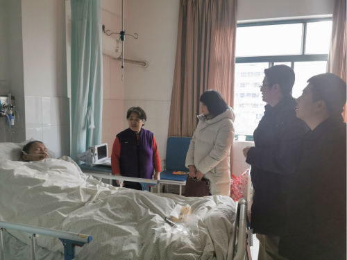 随后,唐洁一行来到安徽针灸医院,看望住院治疗的退休党员教师季亚平老师,向他送去了新春的祝福。党政班子成员仔细询问了季老的住院治疗情况,并向常年卧床的季老简要通报了公司近一年来的发展情况,并勉励季老养好身体,积极接受治疗。