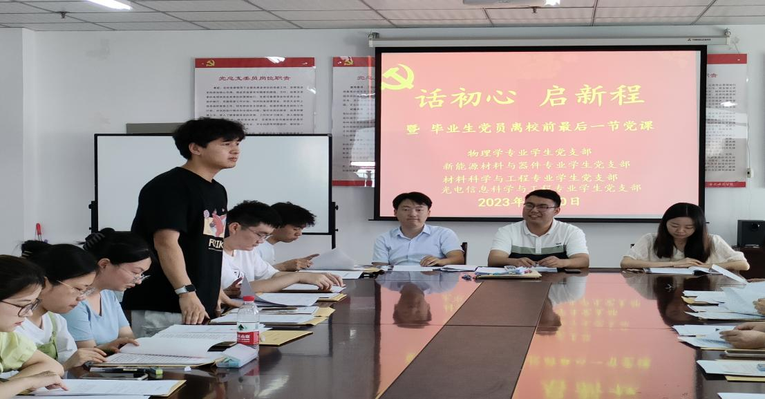会议最后,费文清老师代表员工党支部向毕业生党员提出三点希望:一是要在未来的生活工作中牢记党员身份和入党初心,既怀抱梦想又脚踏实地;二是要旗帜鲜明、立场坚定,既要踏实工作,也要敢于斗争,要以实际行动践行党员标准;三是要站好离校前“最后一班岗”,争做爱校荣校、文明离校的表率。(william威廉中文官网:韩翔)