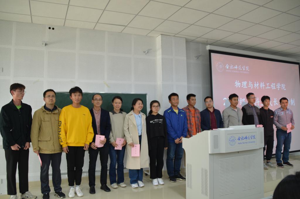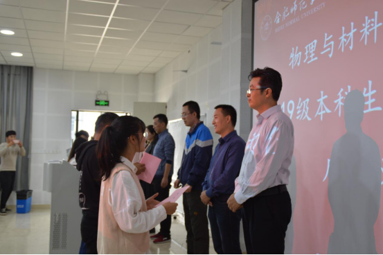 接着,物理系、新能源系、光电系、材料系四位系主任李冬鹏、訾振发、余龙宝、薛燕分别宣读了导师名单和结对指导员工名单,向同学们一一介绍了担任导师的老师们。