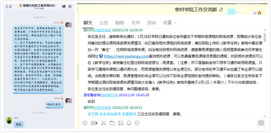 截至目前,公司利用慕课等优质网络课程资源,在雨课堂、学习通等线上教学平台共开设了52门本科生专业课程(包含2门实践类课程,开课门数占公司总开课门数的17%左右)和3门研究生专业课程,授课教师通过直播授课、录播授课、混合教学等方式进行线上教学。在实际教学过程中,很多教师通过组建课程微信群、QQ群等方式作为辅助手段,引导员工自主学习,积极开展线上教学和指导。例如:公司舒志峰老师通过QQ群屏幕共享与微软白板相结合的方式实现语音、板书、PPT的互动教学;陶蕊老师把班级QQ群作为辅导答疑的辅助工具,并将员工在QQ群中的优质问题在学习通平台讨论模块集中展示,方便员工查看;薛燕老师课前将与课程相关的电子书、PPT、讲稿、课程录音等材料同时上传至学习通和QQ群,方便员工自主学习。此外,还有很多老师把自己整理搜集的一些电子资源共享给公司其他老师,丰富了网络课程资源,提高了网络教学质量。目前,从第一周线上教学反馈来看,公司的线上教学运行总体平稳。