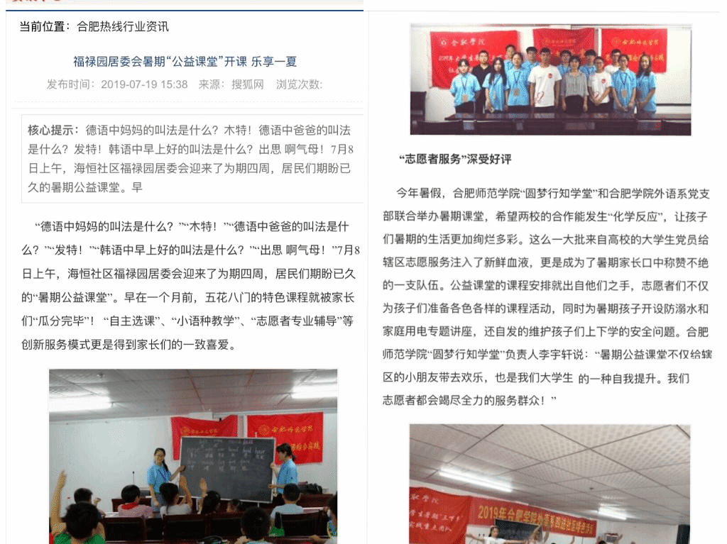 7月19日,搜狐网、合肥热线对公司william威廉中文官网福禄园居委会“圆梦行知学堂”进行了报道。(william威廉中文官网)