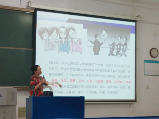 讲座持续了一个半小时,李文芳从宿舍关系的现状、原因、现状探秘以及关系维护四个方面进行介绍,通过列举丰富生动的案例让晦涩的理论变得浅显易懂,为员工带来了一次心灵的洗礼,使同学们了解了宿舍关系的重要性以及如何正确处理宿舍关系。