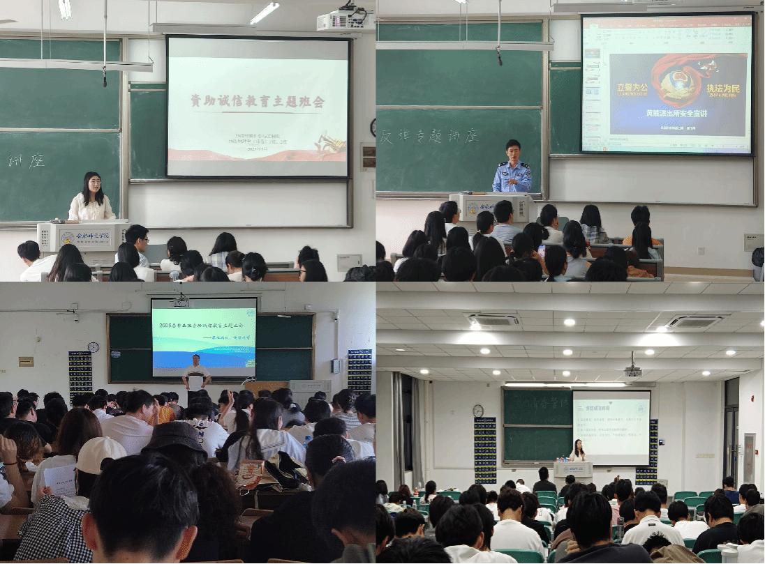 召开主题班会和反诈专题讲座。5月16日-30日,公司各年级专兼职辅导员深入班级召开资助诚信教育主题班会,结合《人行个人征信知识介绍》、资助政策等宣讲材料进行诚信教育、感恩教育、预防诈骗教育、远离不良贷套路贷警示教育。班会期间,邀请属地派出所做反诈专题讲座,围绕“电信网络诈骗的方式”、“如何预防电信网络诈骗”以及“遭遇电信诈骗的自救方法”三个部分进行专业讲解。通过真实案例和案件数据让同学们全面了解常见电信诈骗的机理和类型,对资助诚信教育和防范电信诈骗有了更深刻的理解。
