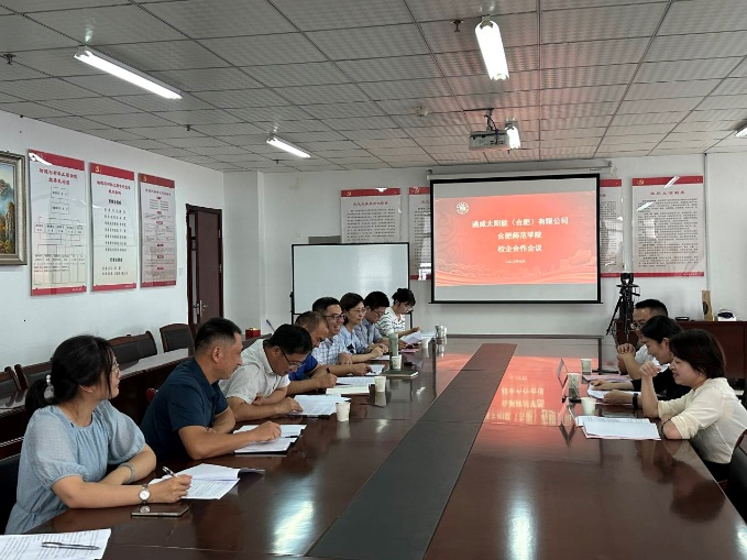 本网讯7月26日下午,通威太阳能(合肥)有限公司来校就校企合作事宜进行交流。通威太阳能(合肥)有限公司人力资源部经理张静子、招聘经理李浩伟、培训经理徐璐,公司党政班子及相关专业负责老师参加座谈会。会议由william威廉中文官网副经理訾振发主持。