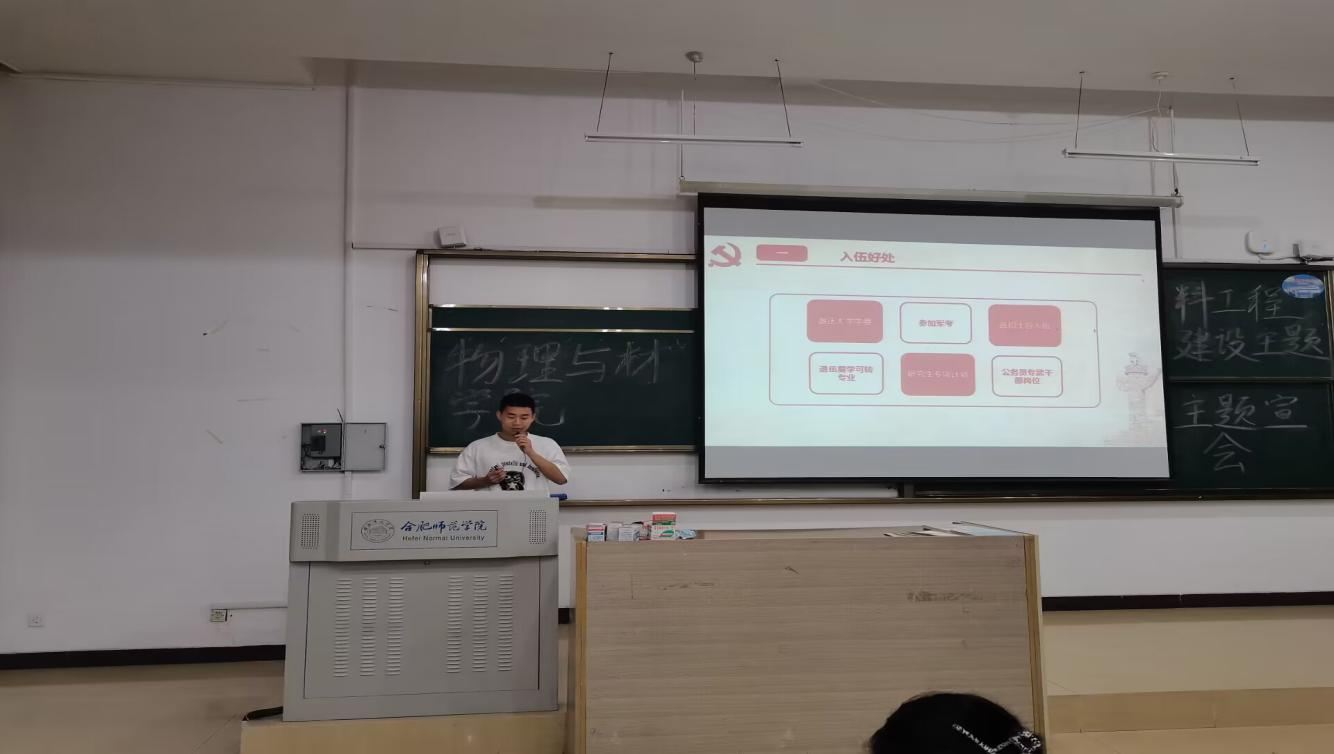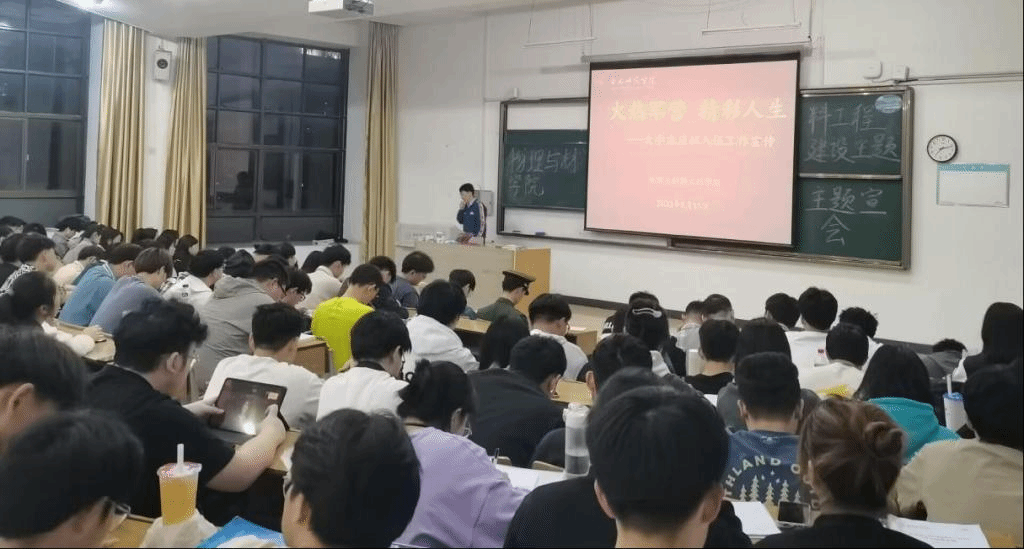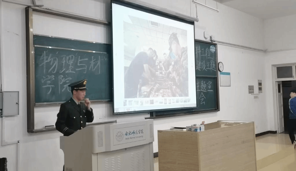 宣讲会上,韩翔向同学们详细介绍了老员工应征入伍的相关政策,号召物材青年学子把爱国之心化为报国之行,将青春之芳华融入钢铁长城建设的伟大事业中去。