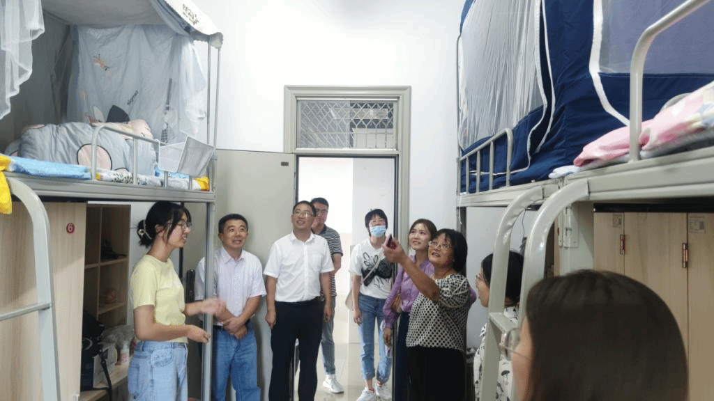 当天下午,公司党委书记唐洁、党委副书记吴震、副经理訾振发与新生辅导员吴梦云、辅导员费文清、行政秘书王利华及相关老师一行来到滨湖校区员工宿舍4号楼、6号楼,走访、看望刚入住的新生,为新生送去全院师生的关心与期待。