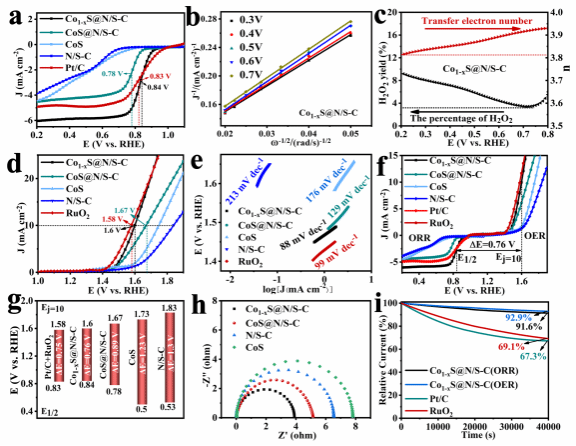 图二Co1-xS@N/S-C及其对比样双功能电催化活性测试结果展示图