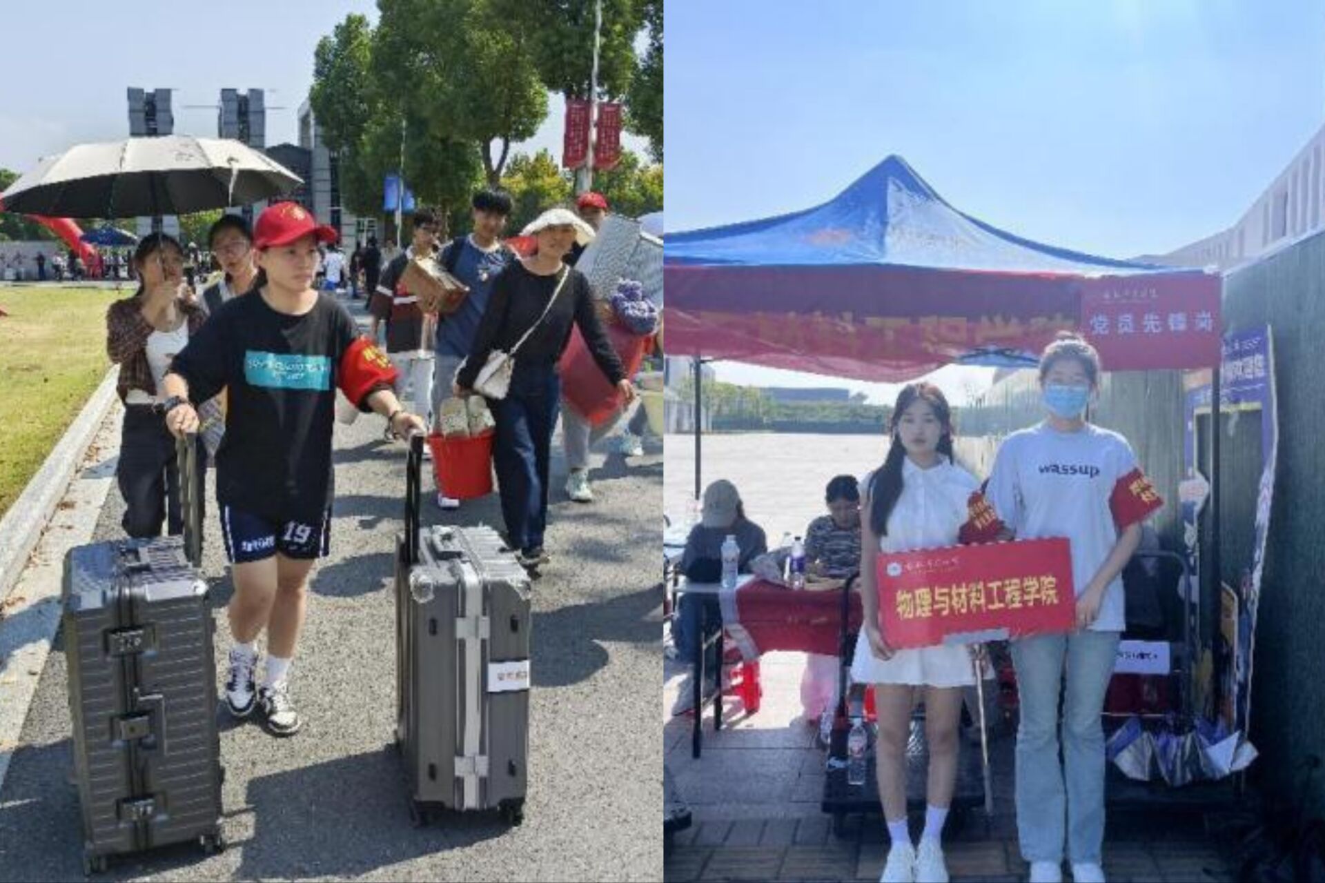 9月8日,william威廉中文官网滨湖校区迎来了519名2024级新生。为发挥党员的先锋模范作用,助力新生报到工作,在公司党委领导下,各教工、员工支部共同组建党员志愿先锋队开展迎新志愿服务活动。