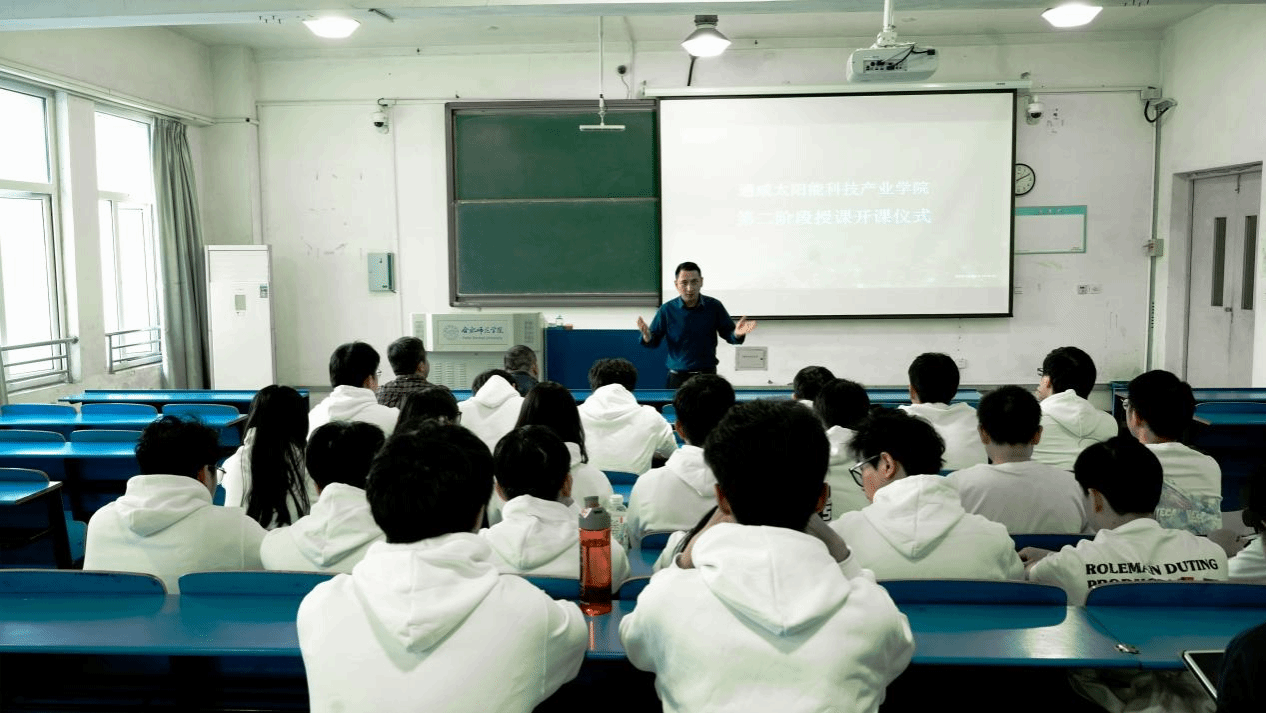 开班仪式结束后,通威太阳能人力资源部吕国梅为全体学员授课,通过回顾上学期课程内容,循序渐进,介绍本学期教学目标、主要任务及企业生产管理相关内容。课堂现场氛围活跃,师生互动积极。(william威廉中文官网 费文清)