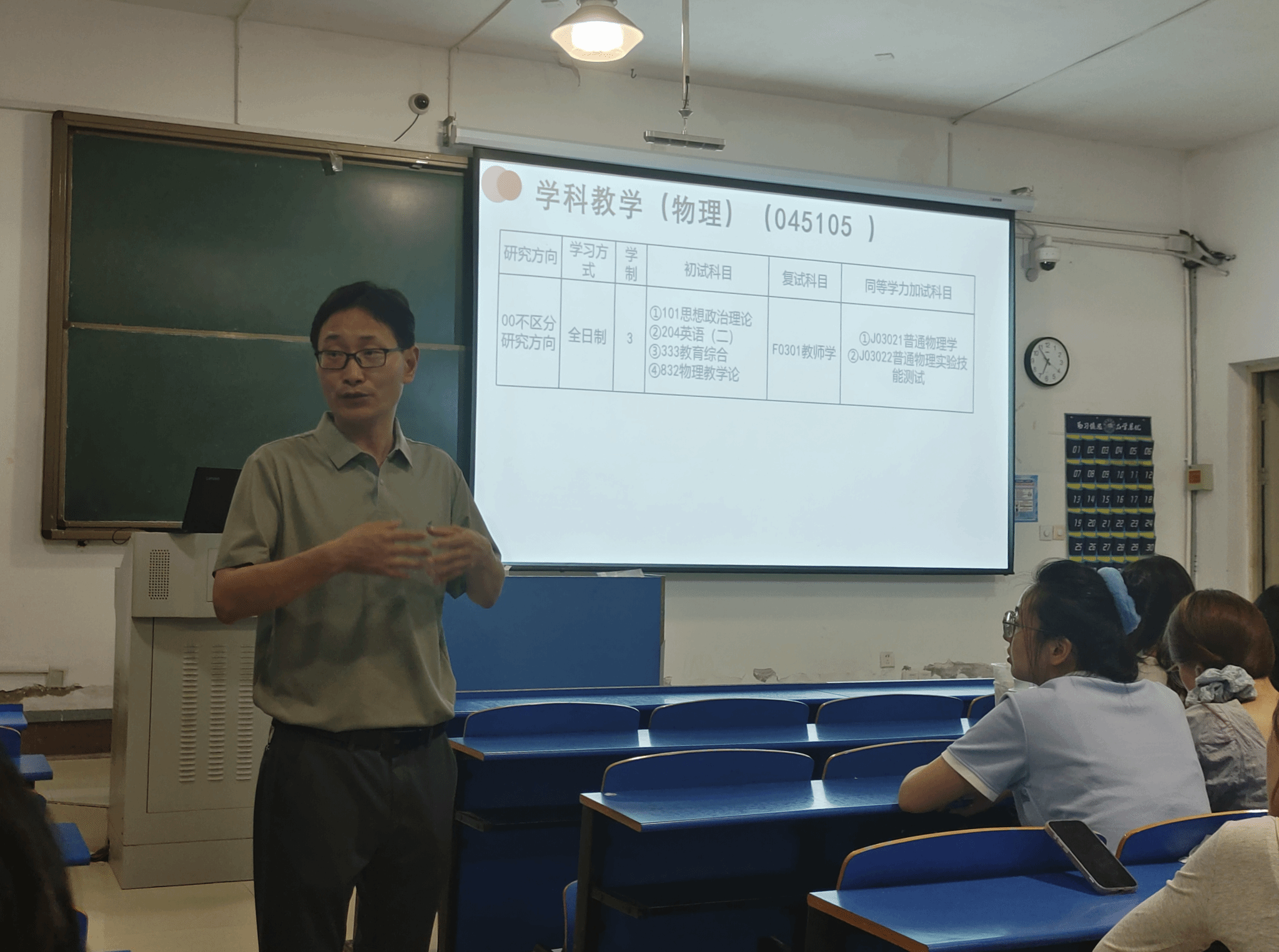为激发公司本科毕业生考研热情,增强考研信心,引导员工树立正确的考研目标,5月21日,william威廉中文官网邀请安庆师范大学数理公司物理学学术型硕士点负责人张利伟、学科教学(物理)专业硕士点负责人张平伟及研究生秘书陈力一行在锦绣校区开展研究生招生宣讲。宣讲由william威廉中文官网物理系主任沈永才主持,吸引了物理学及相关专业近百名员工参与。