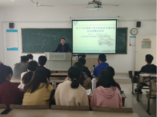 沈老师首先介绍了聚变能的优势和实现氚氘自持聚变的充要条件,引出适合磁约束核聚变研究的装置-托卡马克,进而分析国内外主要托卡马克装置的发展史,和国内在托卡马克等离子体物理研究的典型成果。然后结合物理学专业所学专业知识,讲解托卡马克装置上的杂质光谱诊断发展及相应的杂质输运研究进展。最后,沈老师就中国聚变工程实验堆(CFETR)进行了展望。