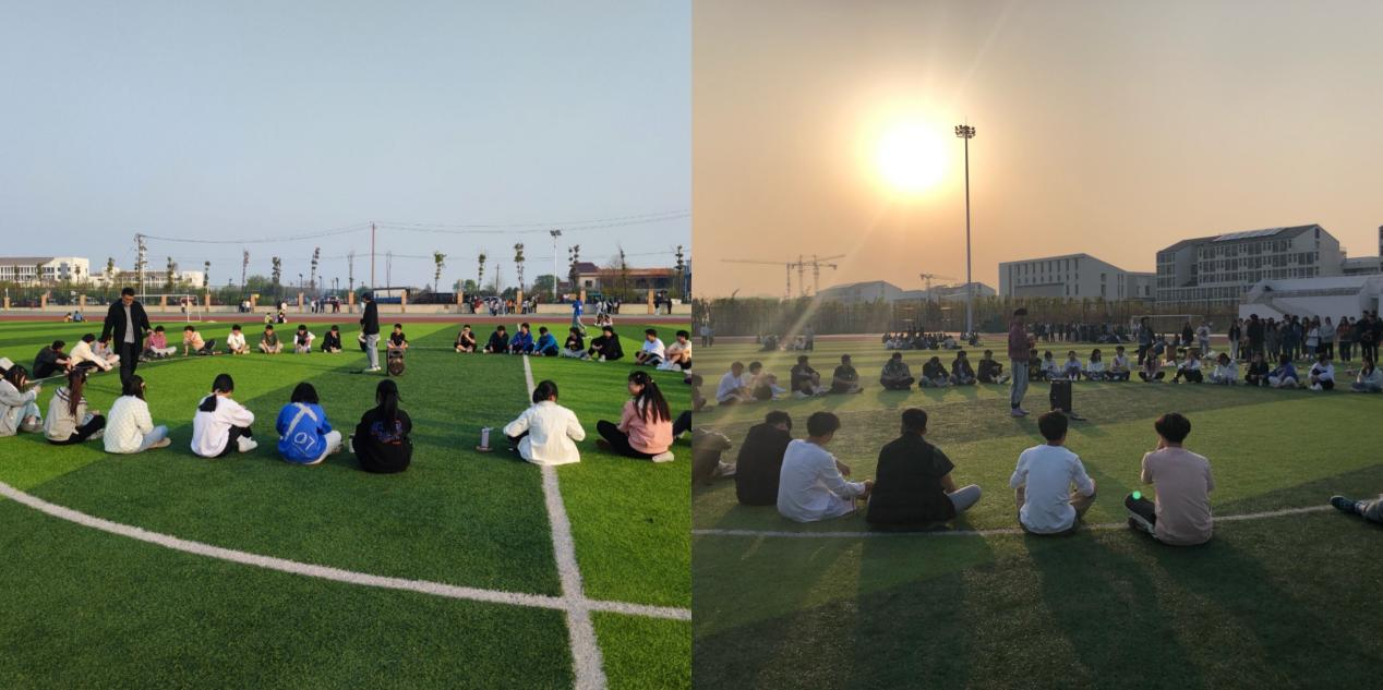 绿色的草坪上,同学们站成一个同心圆进行着“你追我赶”的趣味游戏,锻炼反应速度和耐受力的同时,享受着游戏的紧张刺激。随后,大家携手围坐,通过“击鼓传花”的方式开展真心话大冒险活动,让每位同学勇敢说出自己的故事,自信迎接未知的挑战。每一次交流都是一次感动,每一次感动,都是来自心灵的震撼。