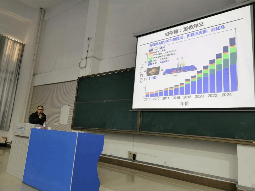 来自中国科公司合肥物质科学研究院强磁场科学中心的汤进研究员做了“透射电镜原位磁畴研究”的报告。汤研究员的研究团队利用聚焦离子束微纳加工技术制备纳米条带器件,通过零磁场对斯格明子和螺旋磁畴混合态反转磁场的方法,成功在实验上实现了新型“磁束子”拓扑磁结构,首次发现多拓扑荷特性“磁束子”,将拓扑磁电子学研究对象从单位拓扑荷扩展到多拓扑荷,揭示了磁性材料中拓扑磁结构的多样性,为未来开发多态存储、逻辑及信息处理器件提供了新的数据载体研究对象。